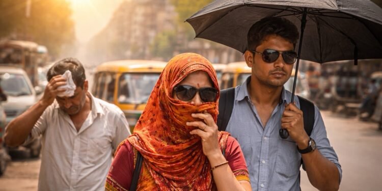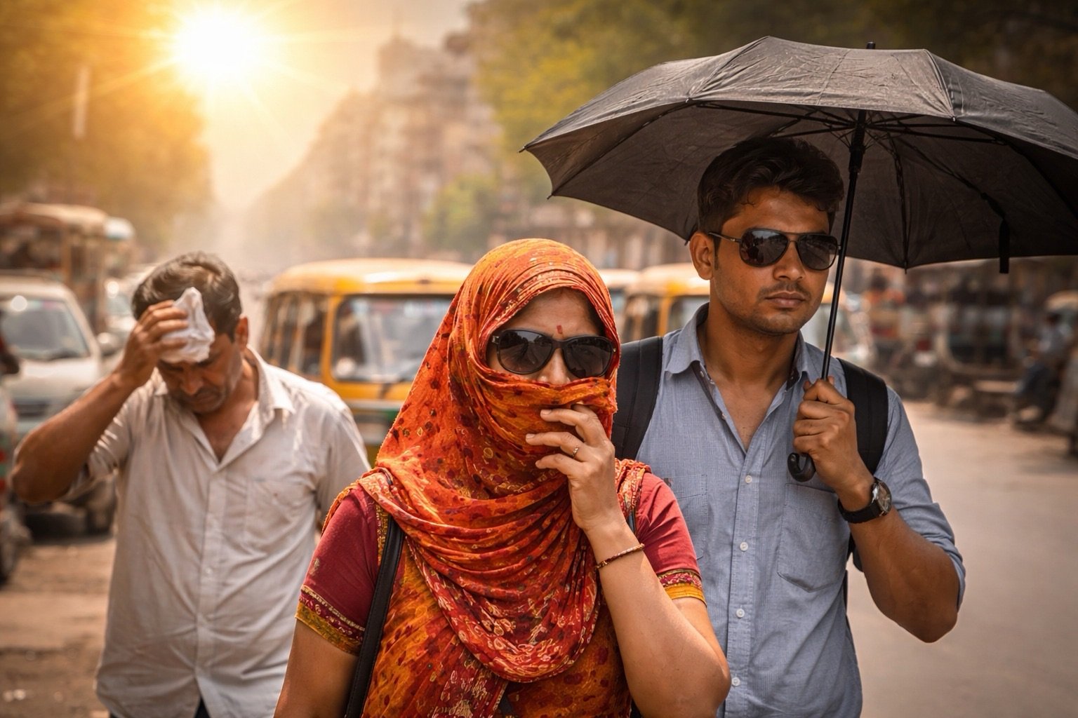 दिनभर चटक धूप और लू जैसे हालात बने रहे. लोग गर्मी से बचने के लिए मुंह पर कपड़ा बांधकर और छाता लेकर बाहर निकलते नजर आए. दोपहर के समय सड़कों पर आवाजाही भी कम देखने को मिली.